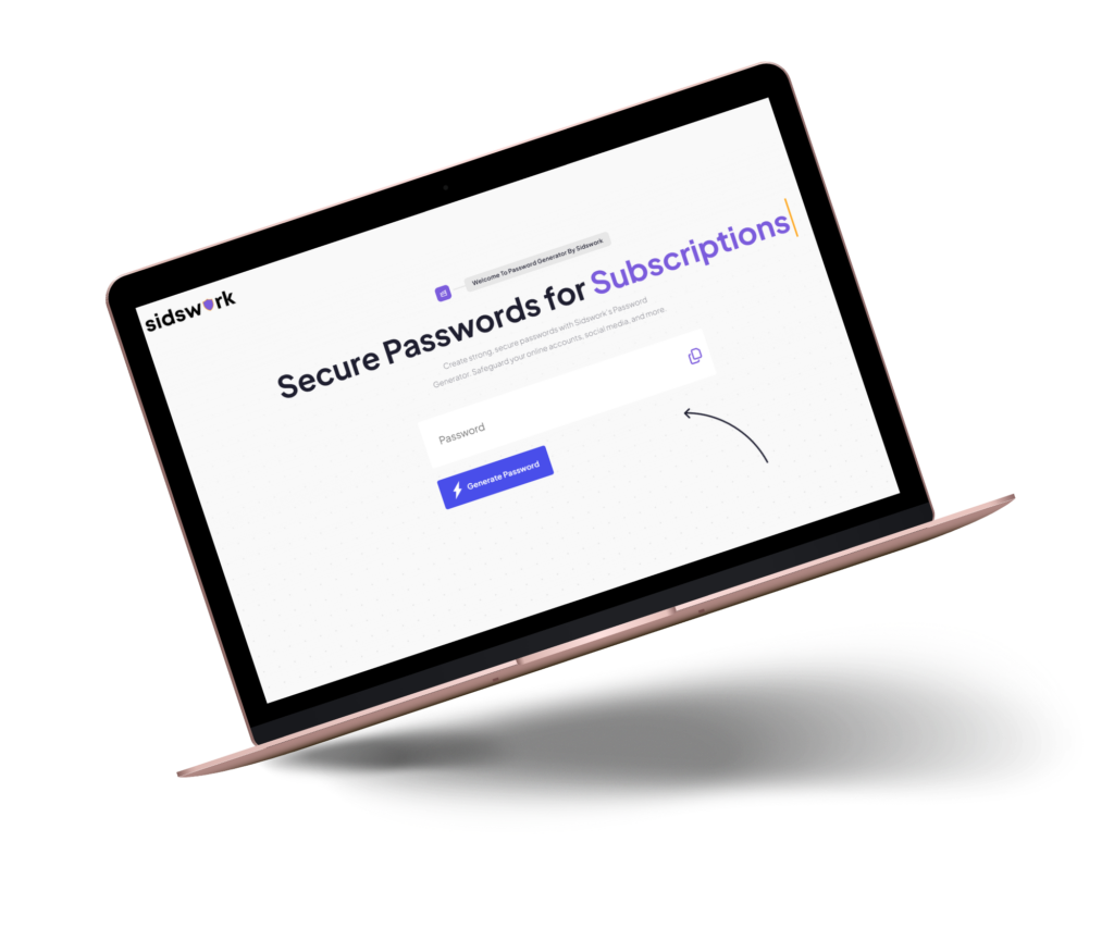 The Sidswork Password Generator is an easy-to-use tool that helps you generate strong passwords for your online accounts, social media profiles, emails, and more. It ensures secure passwords for all your digital needs, including e-commerce sites, cloud storage, and banking applications.