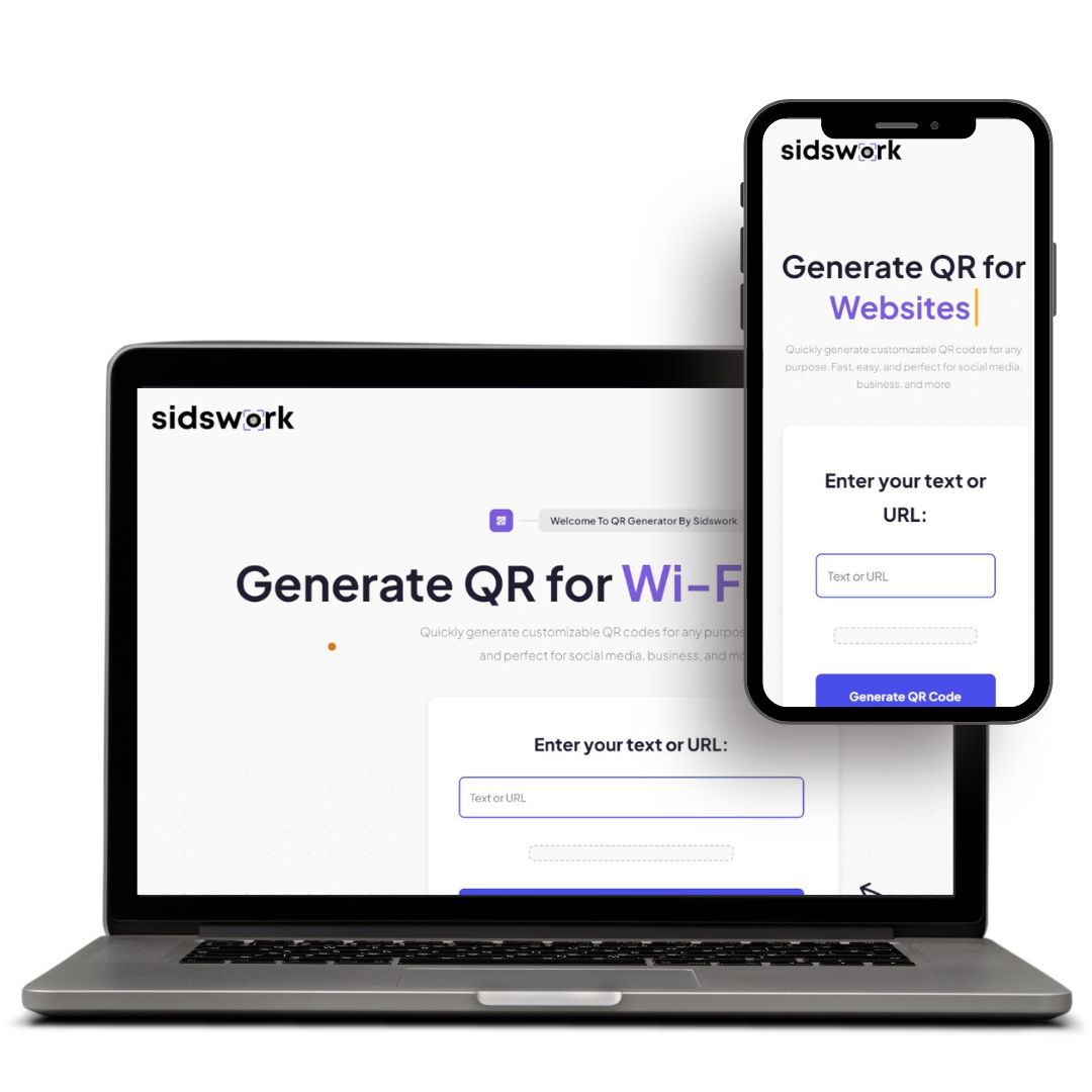 Generate custom QR codes for any URL, contact, text, or social media link. Quick, easy, and reliable QR code creation with Sidswork.